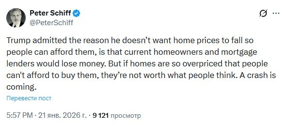нынешние домовладельцы и ипотечные кредиторы понесут убытки. Но если цены на жилье настолько завышены, что люди не могут себе его позволить, значит, оно не стоит тех денег, которые за него просят. Грядёт обвал.
