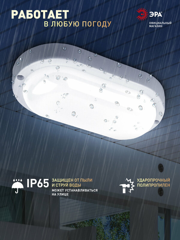 Настенно-потолочный светильник светодиодный уличный ЭРА влагозащищенный IP65 ЖКХ 6500K 1425 Лм 15 Вт 200х98 мм — купить в интернет-магазине ЭРА - официальный магазин на Яндекс Маркете