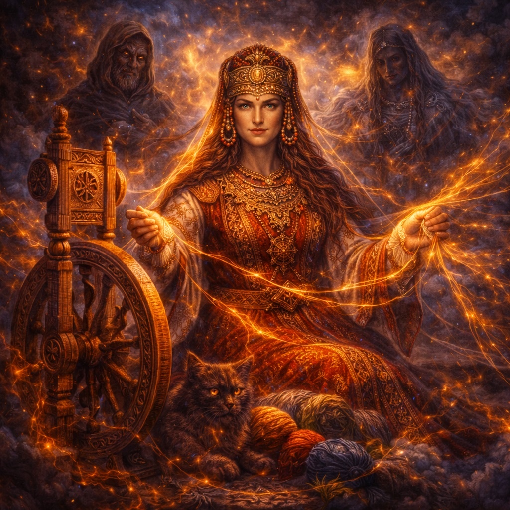 Её нельзя было перечитать, переписать или отменить подписью. Судьбу пряли. И в центре этого представления стоит Макошь — не «добрая мать» и не сказочная покровительница рукоделия, а древняя сила, управляющая самой тканью бытия. Прялка в её руках — не бытовой предмет.