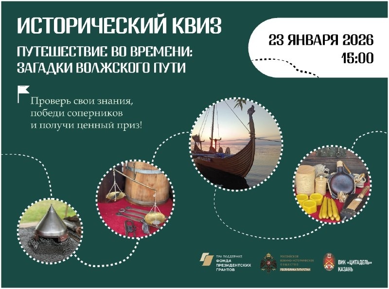 Военно-исторический клуб «Цитадель» Казань приглашает всех желающих на исторический онлайн-квиз «Путешествие во времени: загадки Волжского пути». Мероприятие предлагает участникам отправиться в виртуальное путешествие по одной из ключевых торговых артерий раннего Средневековья. Военно-исторический клуб «Цитадель» подчёркивают, что Волжский путь – это не просто маршрут, а целая эпоха, наполненная тайнами, великими свершениями и культурным обменом. Квиз состоится 23 января в 15:00 в онлайн-формате. Участников ждёт увлекательное испытание на эрудицию и знание истории. По итогам интеллектуального состязания победитель получит полезный приз от татарстанского бренда «КукмАра». Мероприятие проводится в рамках проекта «Истоки Отечества. Великий Волжский путь», который реализуется при поддержке Фонда президентских грантов. Ссылка для подключения к тесту будет опубликована в сообществе клуба «Цитадель» в 14:45 в день проведения события – https://vk.com/club162802464
