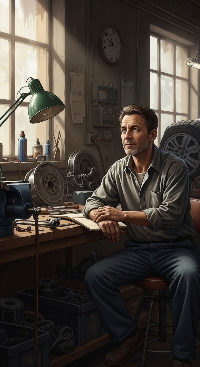 Следующие дни прошли в работе. Он проверял коробки передач, перебирал старые двигатели. Каждый звук, каждый треск был честен: металл поддавался логике, людям — нет.