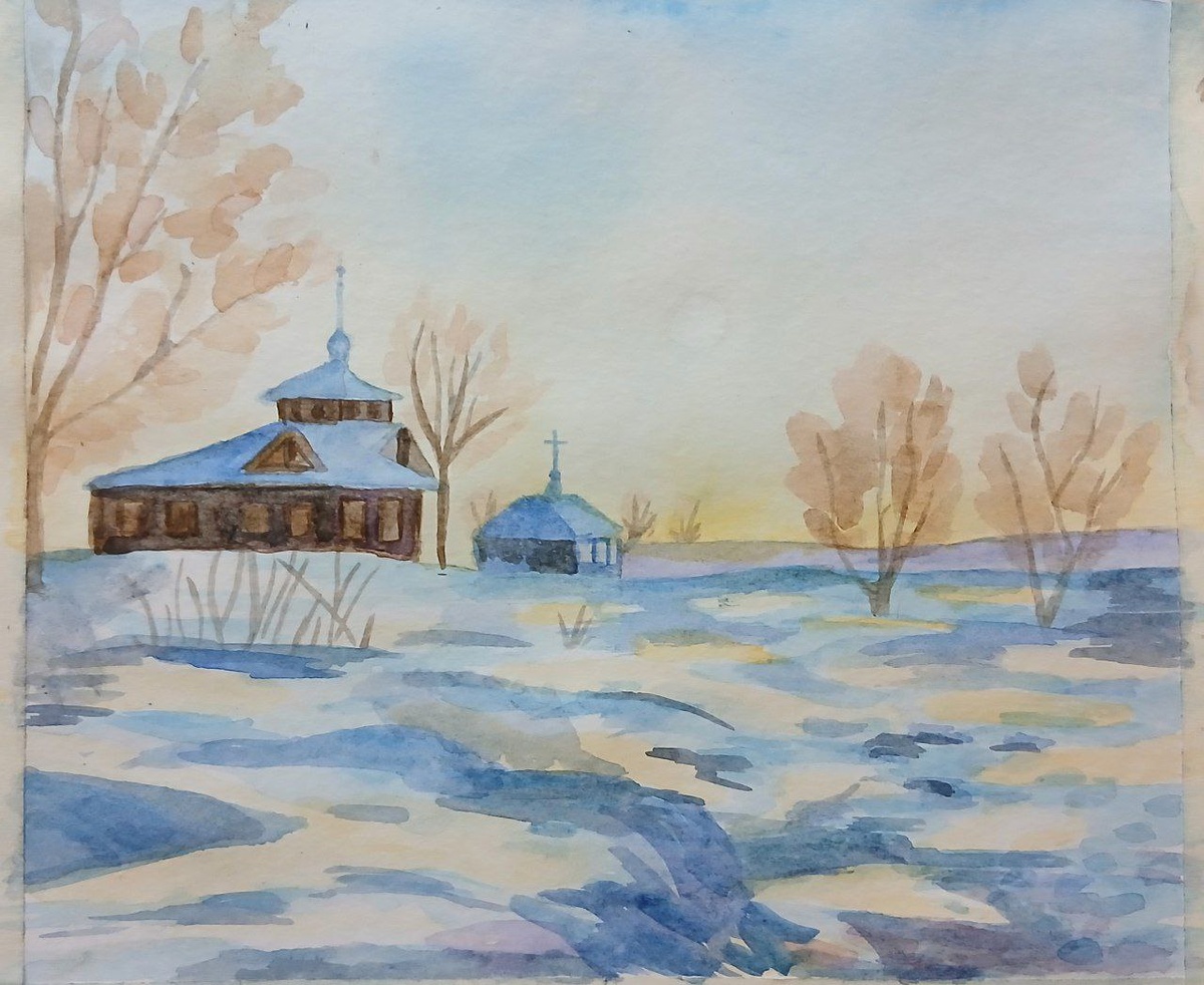 Зимние пейзажи акварелью особенно удаются, когда есть выбор разных по состоянию дня и освещению мотивов