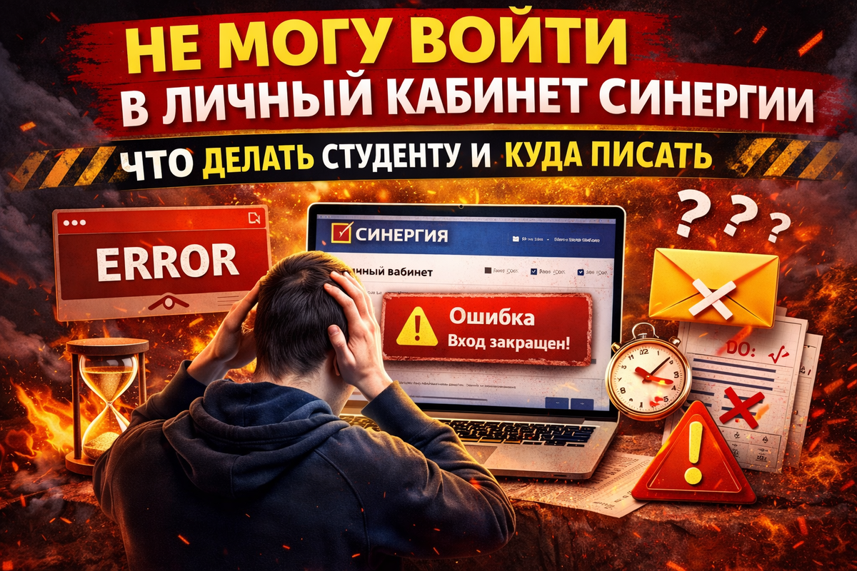 Не получается вход в личный кабинет Синергии в 2026 году? Разбираем основные причины, ошибки входа, проблемы с LMS и рассказываем, куда писать студенту и как решить ситуацию быстрее. Ситуация, когда не получается войти в личный кабинет Синергии, знакома практически каждому студенту. В 2026 году эта проблема по-прежнему остается одной из самых частых причин стресса, особенно если на носу тест, дедлайн или сдача задания. Страница входа может не загружаться, пароль внезапно перестает подходить, система выдает ошибку или просто зависает без объяснении. В такие моменты у студента возникает логичный вопрос - что делать и куда писать, если личный кабинет Синергии не пускает. Чаще всего проблемы со входом начинаются внезапно. Еще вчера все работало, а сегодня система не принимает данные или сообщает, что доступ ограничен. В 2026 году основные причины таких сбоев связаны с обновлениями LMS, техническими работами или перегрузкой серверов в периоды массовой сдачи тестов. Особенно часто это происх