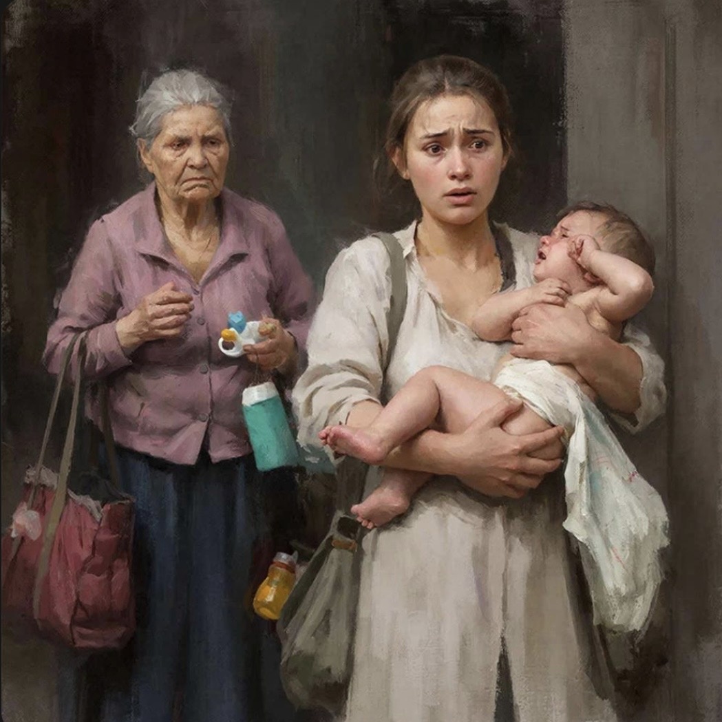 Молодая мама стояла передо мной и ритмично как пружинка приседала в коленях: то ли себя так успокаивала, то ли держащего на руках маленького Никиту, у которого были красные от слез глаза, немного приоткрытый рот с выпирающей губой и вытекающие слюни, размазанные по подбородку. Его лицо будто застыло в моменте за секунду до того, как окончательно расплакаться.