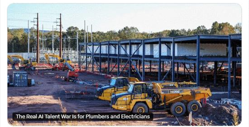 Пока общество обсуждает, «заменит ли AI программистов», реальная угроза для индустрии пришла совсем с другой стороны. Американским технологическим гигантам уже не хватает… электриков. И это не фигура речи — это узкое горлышко, которое тормозит строительство дата‑центров, энергосетей и всей инфраструктуры, на которой держится современный ИИ. Америка осталась без рабочих: идеальный шторм Страна одновременно столкнулась с несколькими факторами: Сегодня США не хватает: При этом доля рабочих старше 55 лет в строительстве — почти 20%. Молодёжь же не хочет идти на стройку: профессия считается «неперспективной» по сравнению с офисными ролями. Но AI‑революция перевернула всё с ног на голову. Дата‑центры упираются в бетон, провода и охлаждение Строительство современного вычислительного центра — огромный проект. Один крупный объект требует: И это не абстракция. Oracle уже перенесла сроки завершения ряда дата‑центров OpenAI с 2027 на 2028 год из‑за нехватки рабочих рук. Лаборатории и дата‑центры с