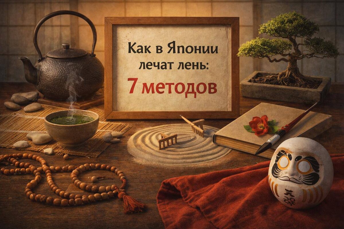 🔥 В Японии лень считают не просто слабостью, а состоянием, которое разрушает фокус и внутреннюю силу. Японцы используют древние практики и философии, чтобы поддерживать дисциплину и мотивацию через рутину, осознанность и маленькие шаги. Вот 7 проверенных методов, которые помогут и вам! 1. Икигай (Ikigai) — найдите цель жизни Икигай — это пересечение того, что вы любите, в чём хороши, что нужно миру и за что платят. Когда задачи связаны с целью, лень отступает, потому что вы просыпаетесь с желанием действовать. 2. Кайдзен (Kaizen) — маленькие улучшения ежедневно Не пытайтесь изменить всё сразу. Делайте крошечные шаги: сегодня на 1 минуту больше. Это накапливается в большие результаты без перегорания. 3. Шукан (Shukan) — сила привычек и рутины Shukan — это формирование автоматических привычек через повторение. Фиксируйте время подъёма, работы и уборки — рутина снижает усталость от решений и побеждает лень. 4. Хара хати бу (Hara Hachi Bu) — ешьте до 80% сытости Остановитесь, когда