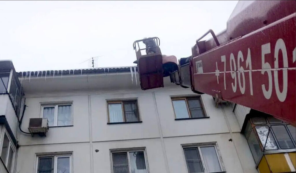 Крыши от наледи и сосулек очищают УК во всех округах Краснодара