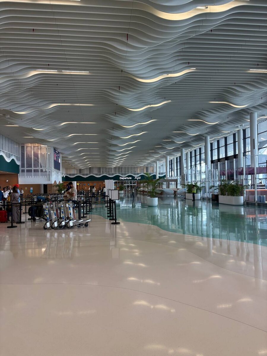 ✈️🌴 Мы только прилетели, и первый «вау» случился ещё до лагуны — в новом терминале аэропорта Велана в Мале. Если вы бывали здесь раньше, помните прежний сценарий: тесно, духота и суета на каждом шаге. Сейчас ощущение другое — больше пространства, света и, главное, понятная логика движения. От самолёта до выхода всё устроено так, чтобы не тратить время и нервы на «куда идти и что дальше». Что особенно заметно: ✅ Стало спокойнее по процессам. Больше стоек и окон — и в итоге меньше толпы и хаоса. ✅ Трансферы организованы понятнее. Для тех, кто летит дальше на гидросамолёте, регистрация теперь проходит в кондиционированном помещении; дальше — по курорту: гидросамолёт или катер. ✅ Вид на море прямо из терминала — и это тот редкий случай, когда отпуск начинается ещё до катера. Сейчас терминал уже даёт главное — пространство, комфорт и спокойную организацию прилёта. При этом коммерческая часть будет раскрываться поэтапно: по мере полного запуска терминала аэропорт планирует расширять зон