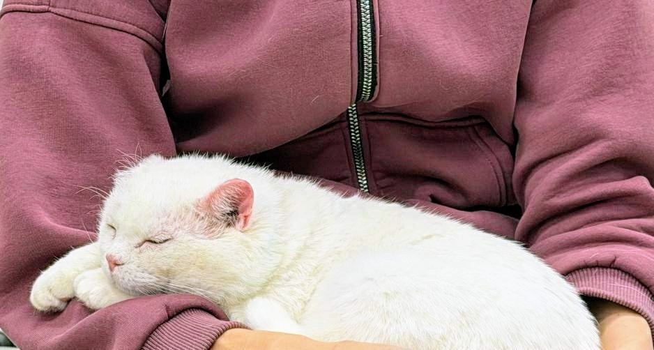 Этого чудесного ласкового белого кота я видела, когда приезжала в клинику на Братиславской за Соней. Он просто вышел мне навстречу откуда-то из-за угла в коридоре и очень просил его погладить...