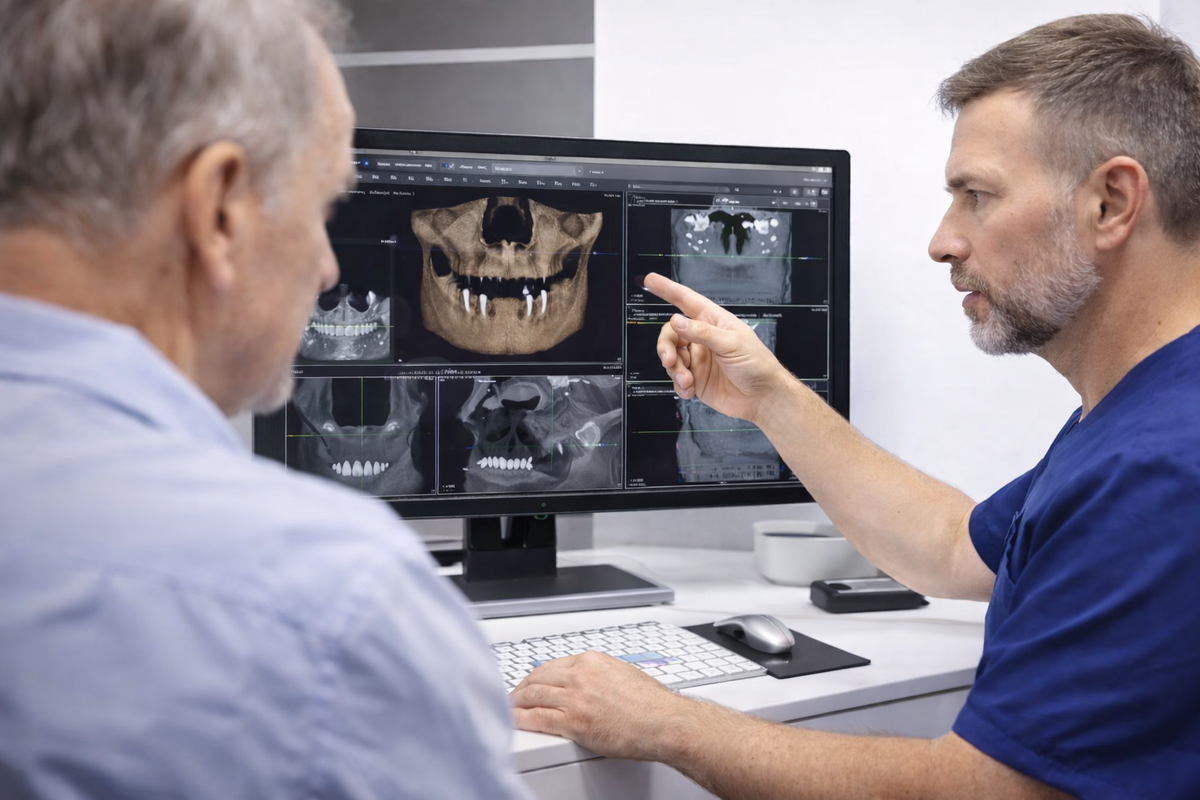 Имплантация All-on-4 часто подаётся как «быстрое и универсальное решение»: 4 импланта — и новая улыбка за один день. Но в реальной практике именно эта методика чаще всего разочаровывает пациентов, если допущены ошибки на этапе подготовки. Причём пациент обычно узнаёт об этом слишком поздно — когда уже есть боль, воспаление или подвижность протеза. Разберём 7 ключевых ошибок, которые напрямую влияют на результат All-on-4. Одна из главных иллюзий — что All-on-4 можно поставить «примерно одинаково всем». На деле: Если врач ориентируется только на общий снимок или опыт «на глаз», это повышает риск: Многие пациенты даже не знают, что именно смотрят на КТ перед All-on-4.