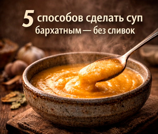 Шеф-повара раскрывают секрет: как сделать суп бархатным без сливок Знакомое чувство: хочется густой, обволакивающий суп, который согревает душу и тело, а не просто жидкий бульон с плавающими ингредиентами. Именно текстура превращает простой суп в шедевр! Но как её добиться, не прибегая к тяжёлым сливкам? Оказывается, у профессиональных поваров целый арсенал приёмов. Мы изучили их опыт и делимся топ-5 способами загустить любое блюдо — от наваристого гамбо до лёгкого супа с яйцом. 5 волшебных способов для идеальной консистенции 1. Ру (Roux): классика для насыщенных супов Эта смесь муки и жира — основа крем-супов, чаудеров и гамбо. Секрет в том, что, обжаривая ру до разных оттенков (от светлого до орехового), вы не только загущаете, но и придаёте глубокий вкус с лёгкими ореховыми нотками. Лайфхак от шефа: Добавляйте бульон в горячее ру небольшими порциями, интенсивно помешивая. Это гарантия гладкой текстуры без комочков. И дайте супу немного покипеть после этого — так уйдёт сырой мучной п
