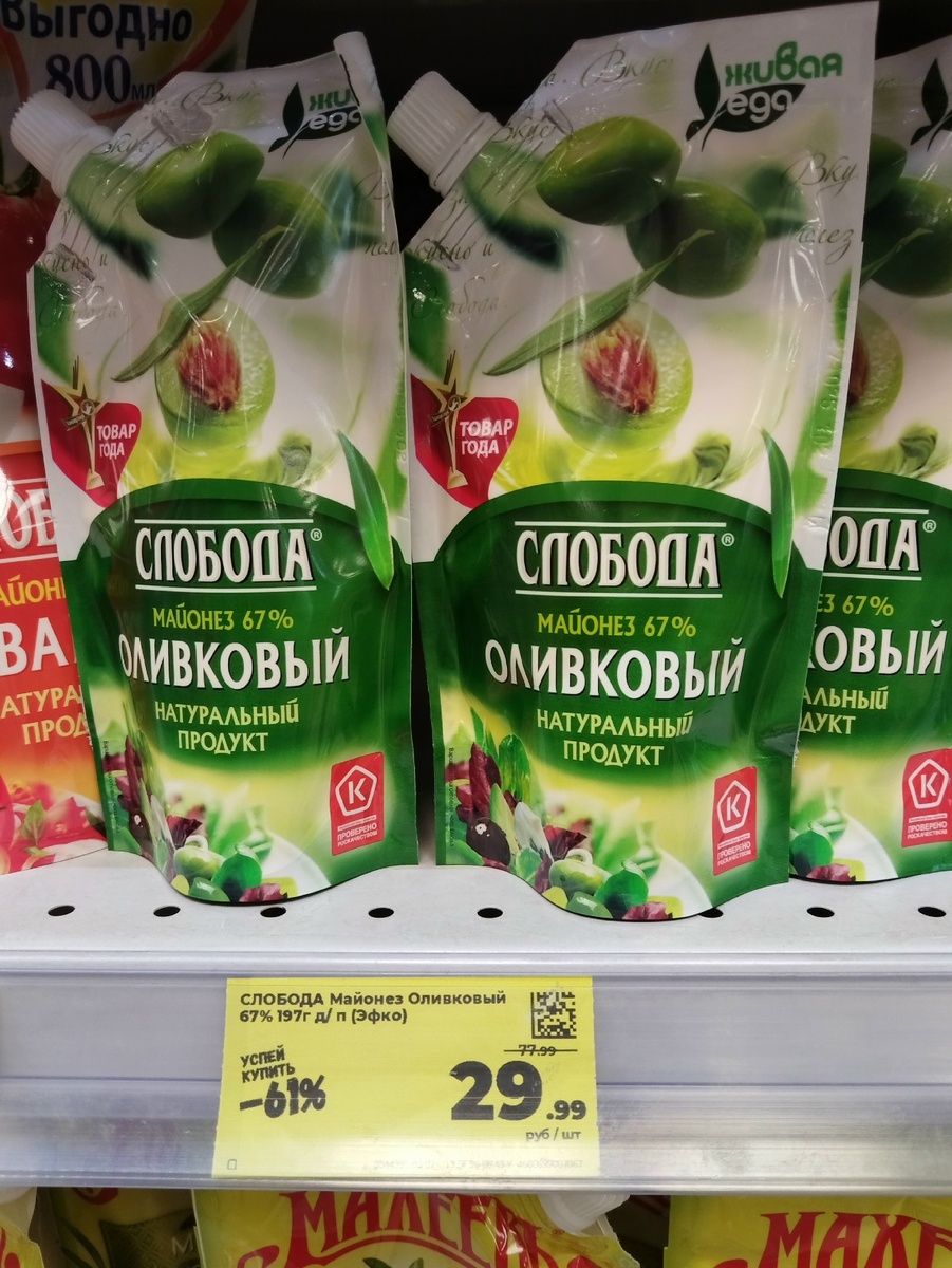 Я и раньше не ходила в магазины со списками, а сейчас - тем более. Точно знаю, что мне нужно купить. Но не удержусь что-нибудь прихватить по акции. Например, 67%-ный оливковый майонез «Слобода» по 29 ₽ за пачку. Вот то, что я купила вчера. Но сразу поделиться в статье не успела, потому что мы ушли гулять и вернулись поздно. Так было хорошо: мороз, солнышко, свежесть непередаваемая и просто безграничное изобилие снежности... Итак, это покупка за среду, 21 января. Покупала в «Магните». Уже всем нам полюбившиеся «Скрепыши» с сюрпризом. Новогодняя серия! Показываю, что мне попалось. Так мило! Сосисочки с индейкой очень вкусные! У нас в «Магните» можно купить два по цене одного, если срок годности - до завтра. Купила два сырка творожных всего за 28 ₽. Выгодно по цене! Собственно, сам майонез. Пробили по ценнику, потому что на кассе выходило дороже. Всё же 29 ₽ за пачку хорошего майонеза - классная цена! Правда, там и было всего 4 пачки. Их я и купила. Ценник кассирша сама мне в корзинку п