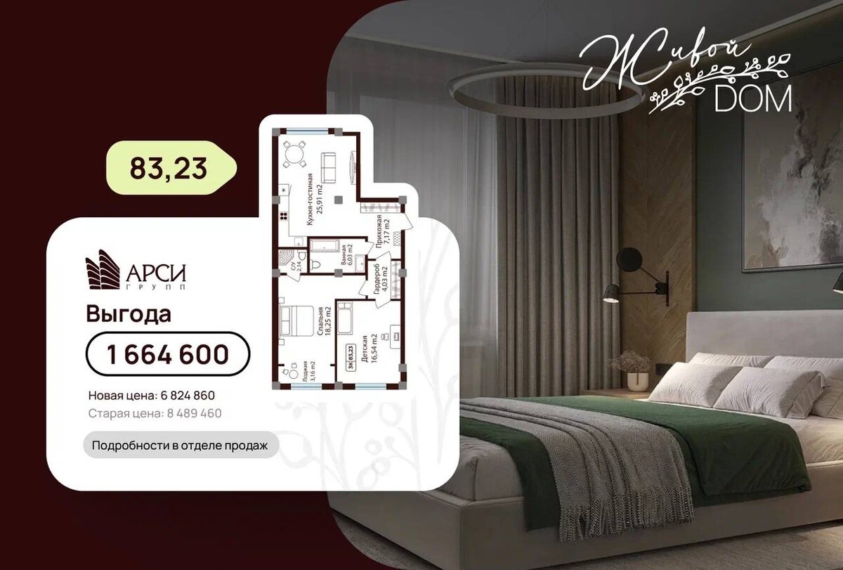 Современная архитектура, выверенные планировки и особые условия покупки. Сейчас — выгода до 1,6 млн ₽ на ограниченное количество квартир. Выбор для тех, кто ценит качество: • 83,23 м² — просторное решение для семьи Цена: 6 824 860 ₽ • 78,85 м² — баланс уюта и функциональности Цена: 6 465 700 ₽ • 78,92 м² — классическая планировка, продуманная до деталей Цена: 6 471 440 ₽ Специальные условия действуют ограниченное время. 📩 Подробности — в отделе продаж.