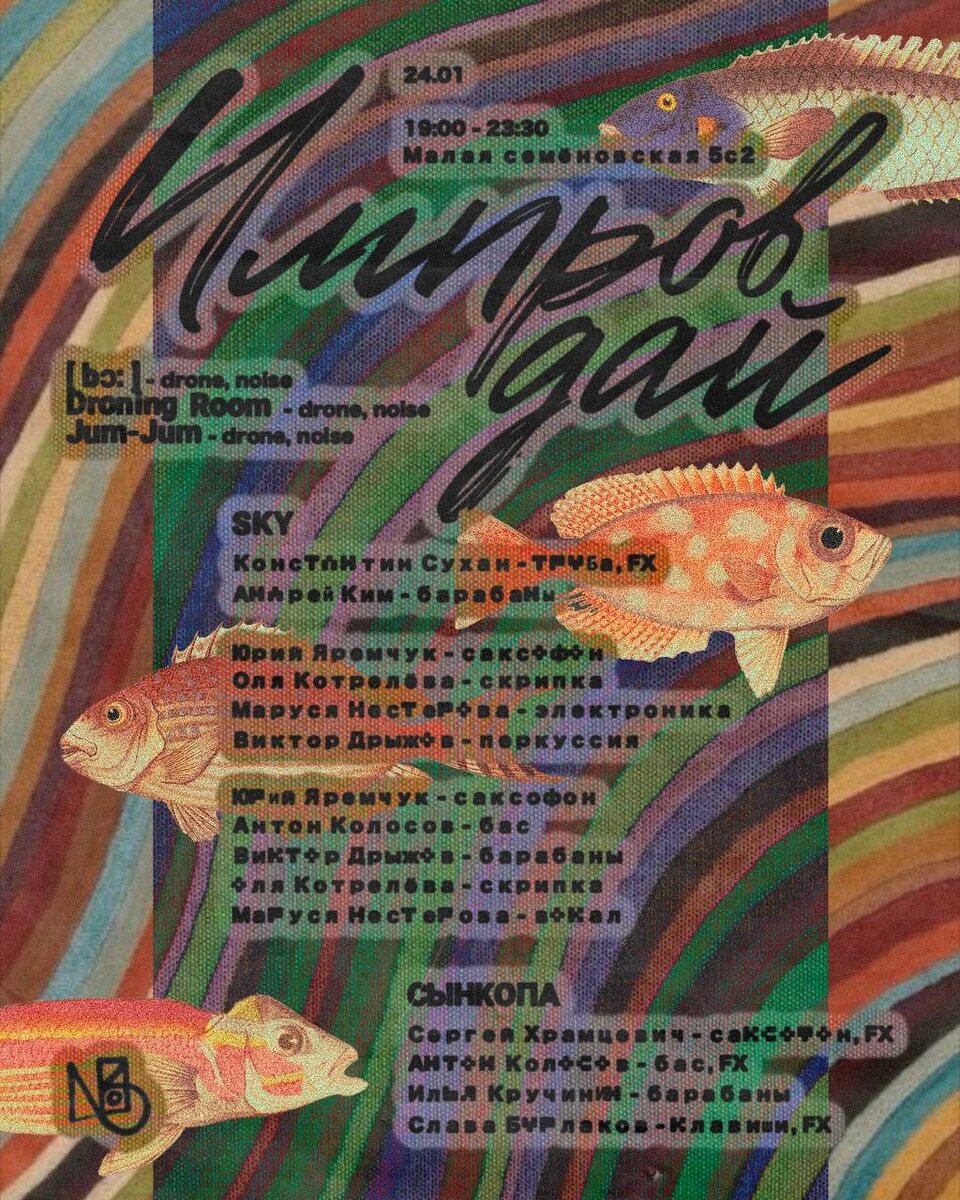 #avantgarde #electronic #experimental #folk #instrumental #jazz #noise #psychedelic ► ИМПРОВ ДАЙ ● TG ● VK Праздник импрова возвращается! 13 топовых музыкантов, 5 бронебойных составов, из них три уникальных. Истинное наслаждение для любителей импровизационной музыки! Участники: ► [ bɔ: ] ● VK ► Droning Room ● TG ● VK ► Jum-Jum ► SKY (Андрей Ким) ● TG ► SKY (Константин Сухан) ● TG ► Юрий Яремчук (саксофон) ● VK ► Виктор Дрыжов (барабаны, перкуссия) ● TG ● VK ► Маруся Нестерова (электроника, вокал) ● TG ► Оля Котрелёва (скрипка) ● TG ► Антон Колосов (бас) ► Сергей Храмцевич (саксофон) ● TG ► Илья Кручинин (барабаны) ● TG ► Слава Бурлаков (клавиши) Билеты от 500₽