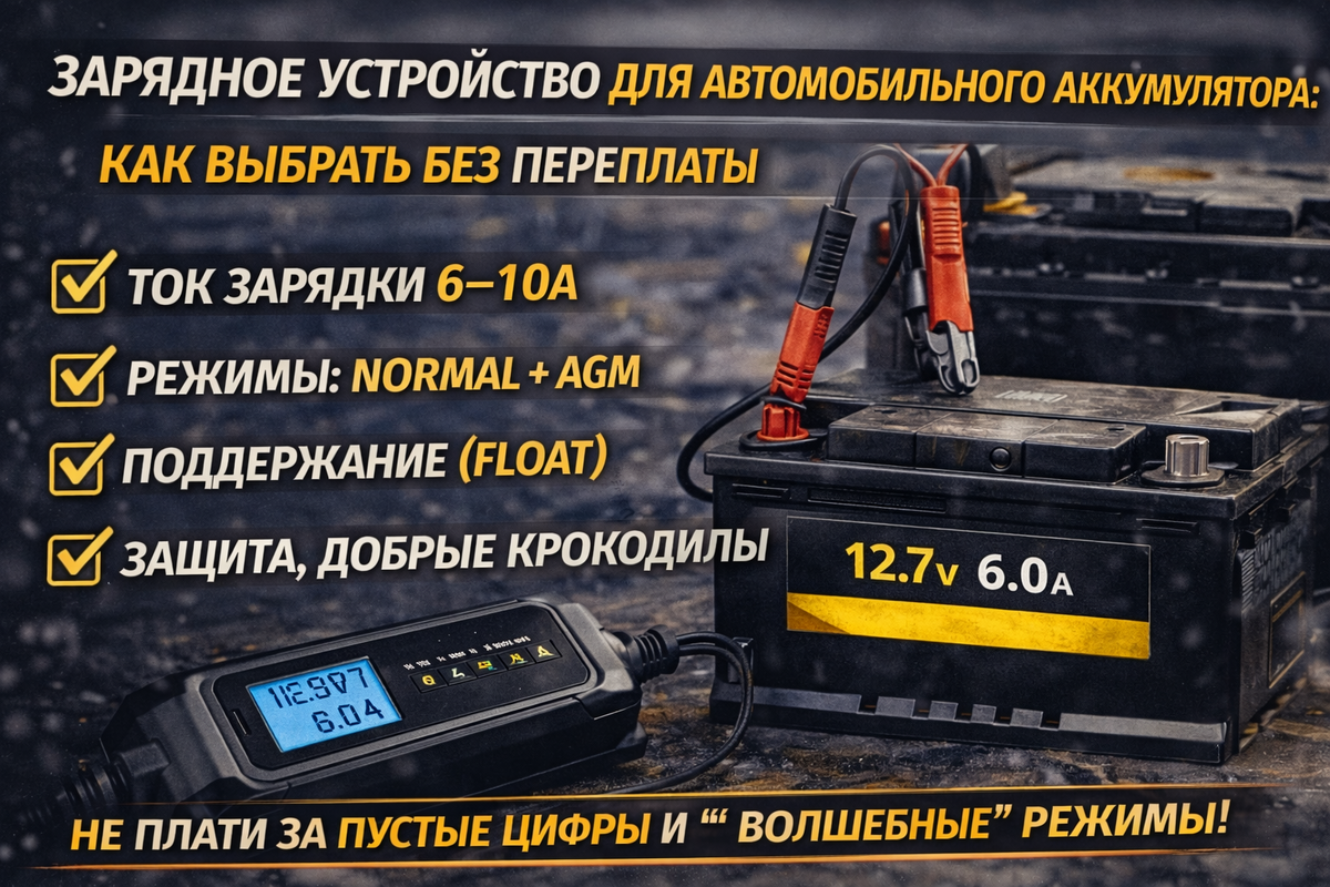 Я — POWER LAB. Сейчас дам универсальную схему: какое зарядное для автомобильного аккумулятора реально нужно, какие режимы важны, какие цифры смотреть (ток, напряжение), и где обычно переплачивают за маркетинг.