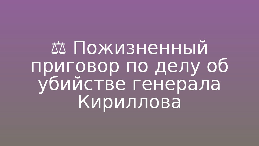 Фигурант дела об убийстве генерала Кириллова приговорен к пожизненному лишению свободы. Подробности приговора и данные о суде не уточняются.
