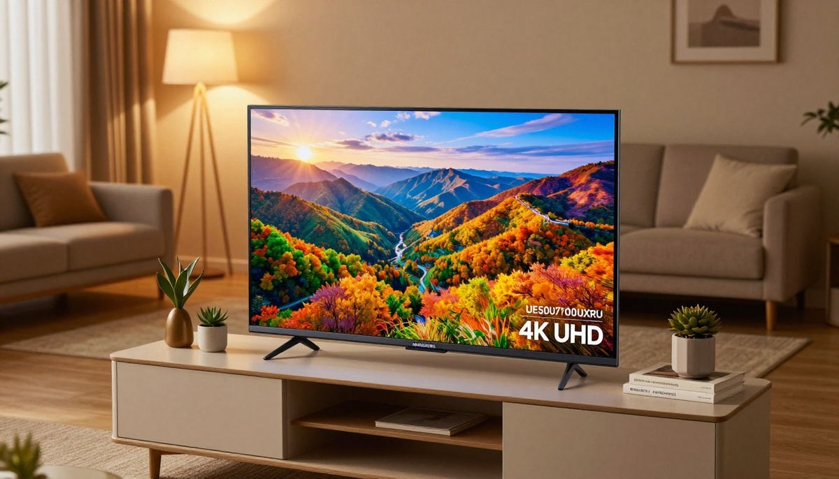 Samsung's UE50DU7100UXRU model showcases a sophisticated design language that emphasizes both form and function. This 50-inch 4K UHD TV is designed to be a centerpiece in any living room, with a sleek and modern aesthetic that appeals to a wide range of consumers.