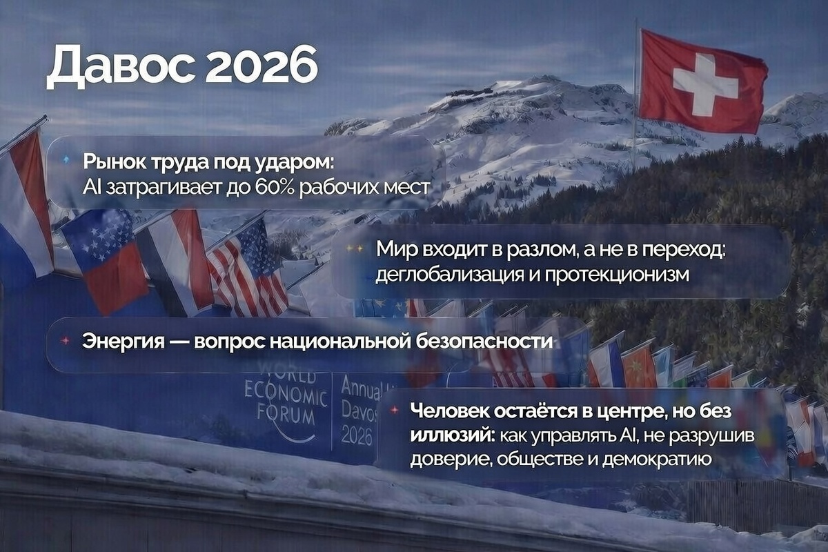 Второй день Давоса-2026 ясно показал: глобальные элиты больше не обсуждают плавный переход к новому миру. Речь идёт о разрыве старой модели — экономической, технологической и геополитической. AI стал центральной темой дня, но тон резко изменился. Если в 2023–2024 обсуждали «возможности», то сегодня говорят о контроле, ROI и последствиях. Кристалина Георгиева (МВФ) прямо заявила: «Цунами уже ударяет по рынку труда». По оценке МВФ, AI затрагивает: Ключевой страх — не замещение, а асимметрия: одни регионы получают выгоды, другие выпадают из экономики. Microsoft (Брэд Смит) и Google DeepMind (Демис Хассабис) сделали акцент не на гонке моделей, а на инфраструктуре, данных и управляемости. Главный вопрос: кто получит доступ к AI и кто за него заплатит — энергией, водой, рабочими местами и политической стабильностью. Рут Порат (Alphabet) сформулировала ключевой тезис дня: «AI — это не про cost-cutting. Он должен менять границы возможного». При этом Марк Бениофф (Salesforce) честно признал: «М