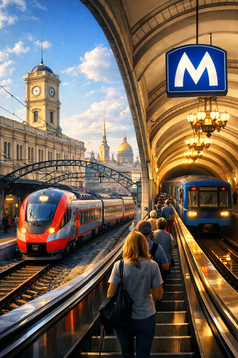 3. Электрички vs. метро. Для поездок в пригороды (Пушкин, Петергоф, Павловск) с главных вокзалов ходят комфортные электрички, в том числе скоростные «Ласточки». Они часто бывают быстрее и удобнее, чем маршрут с пересадками на метро и автобусах.