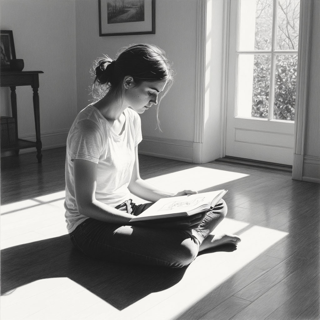 Прошла неделя. Лиза вышла из оцепенения и наткнулась на быт. В раковине груда посуды. Пыль на полках. Она начала убирать. Механически, тщательно, как пытаясь стереть следы самой себя, той Лизы, что жила здесь. В дальнем углу шкафа она нашла коробку со старыми вещами. И на самом дне — альбом с рисунками. Её рисунки. Еще со студенческих времен, до дизайна, до Андрея, до всего. Натура карандашом, смешные комиксы, эскизы странных платьев. Ту самую Лизу, которая мечтала не о квартире в центре, а о том, чтобы её работы висели в галерее. Куда она делась?