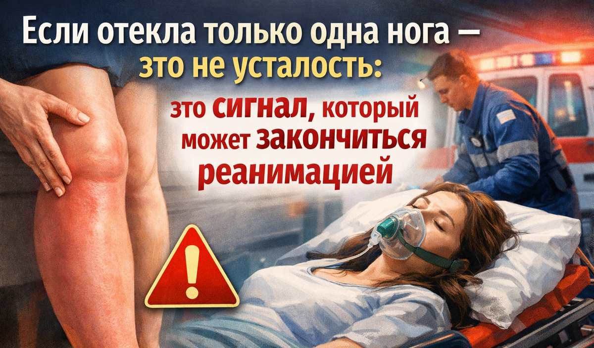 Проблема не в боли. Боли может не быть вовсе. Температуры тоже. Не будет открытой раны, синяков, очевидного события. Будет только одна нога, которая отекла. И будет наша попытка это объяснить. Усталость. Долгая поездка. Неправильная обувь. Спортзал. Лишняя соль. Что угодно, лишь бы не думать о плохом. А между тем, если отекает сразу две ноги, чаще всего виноваты почки, сердце или соль. Но если только одна — это повод не философствовать, а проверять. И чем быстрее, тем лучше.