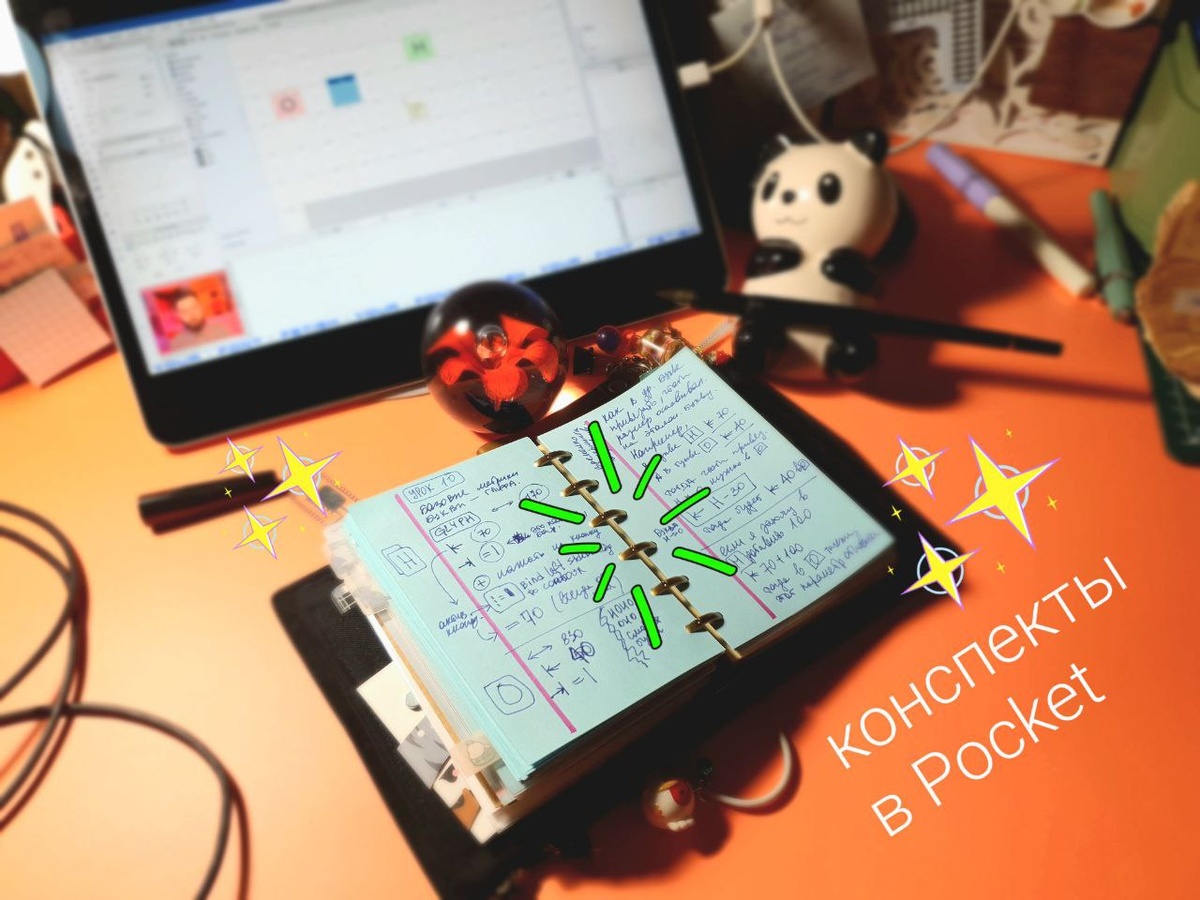 Размер системного блокнота Pocket мини 6 на кольцах отлично вписался в учебный процесс. Пишу сразу в нём, что поняла из урока. Поля линовала малиновым маркером ✨