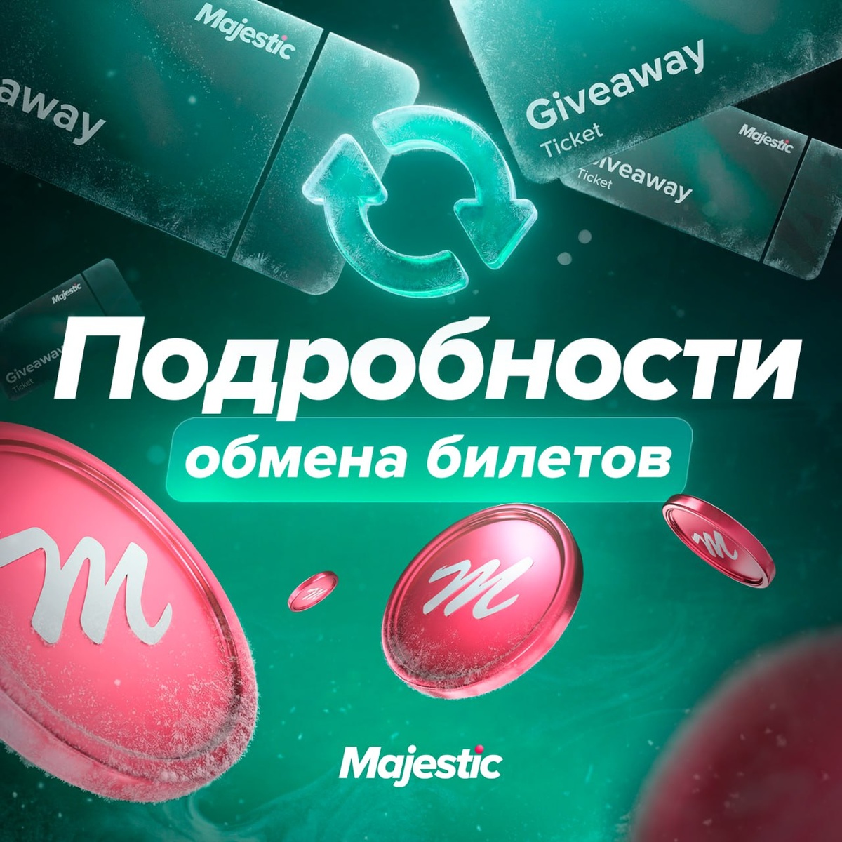 Мы подвели итоги розыгрыша, и если удача в этот раз была не на вашей стороне, после рестарта вы сможете обменять билеты на Majestic Coins. Обмен будет доступен при входе в игру (в модальном окне) с 22.01 6:00 до 27.01 23:59, для игроков, собравших 30 и более билетов. 😏 Условия обмена: • 1 билет = 3 MC • Обменять билеты можно один раз • Максимальный лимит = 1000 MC ❤️ Majestic Role Play