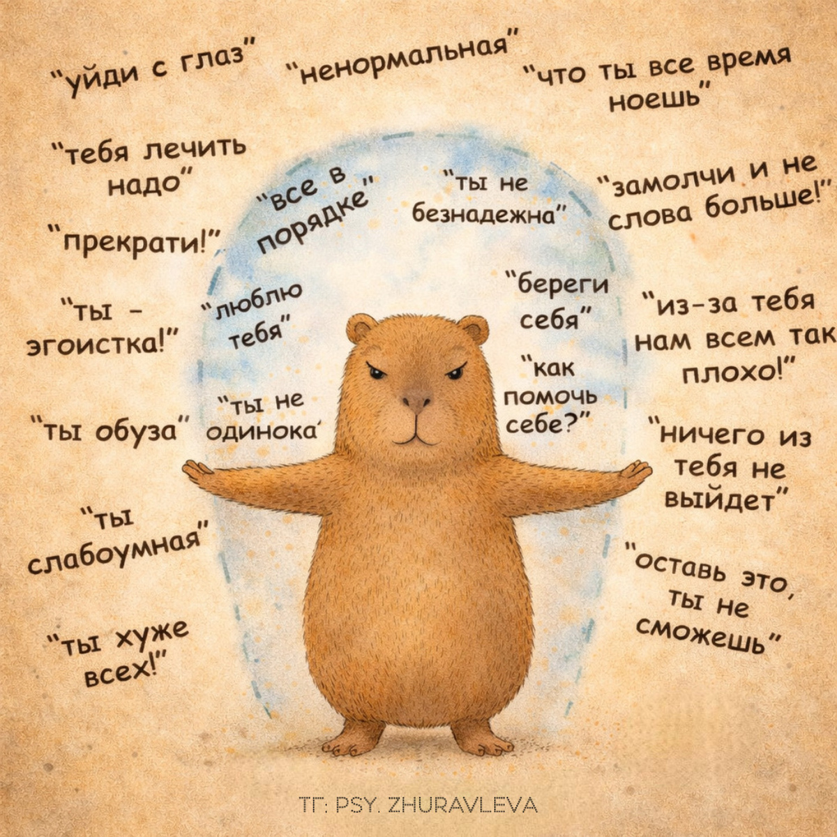 Поддерживающие фразы в этом месте работают иначе, чем принято думать. Они не перекрывают внешние голоса и не пытаются их заглушить, потому что шум снаружи всё равно существует. Их функция состоит в создании внутреннего контура безопасности, в котором можно дышать, думать и оставаться собой, даже если рядом звучит обвинение, недовольство или требование. Этот контур не отменяет реальность, но делает её переносимой.