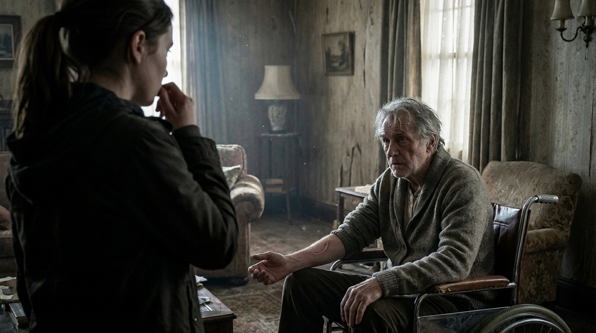 Она посмотрела на его ноги — худые, неподвижные под пледом. На руки — те самые руки — трясущиеся, в старческих пятнах. Когда-то они были сильными. Когда-то они сломали её жизнь.