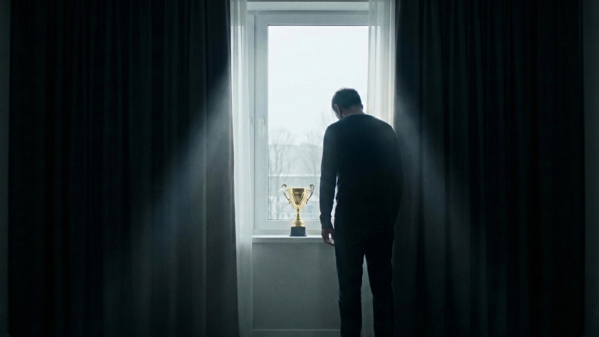 В комнате было темно. Тяжёлые шторы цвета старого бордо не пропускали свет. Кровать заправлена. Книги на полке. И – кубок на тумбочке у стены. Золотистый, с гравировкой. Повёрнутый лицом к стене.