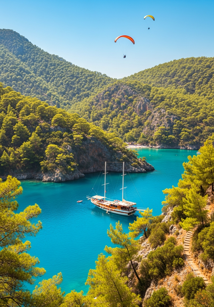 Полет проходит в тандеме с опытным инструктором и длится около получаса. Приземление происходит прямо на пляж Олюдениза — зрелище, которое собирает толпы зрителей. Даже если вы боитесь высоты, стоит подняться на гору хотя бы ради потрясающих видов.