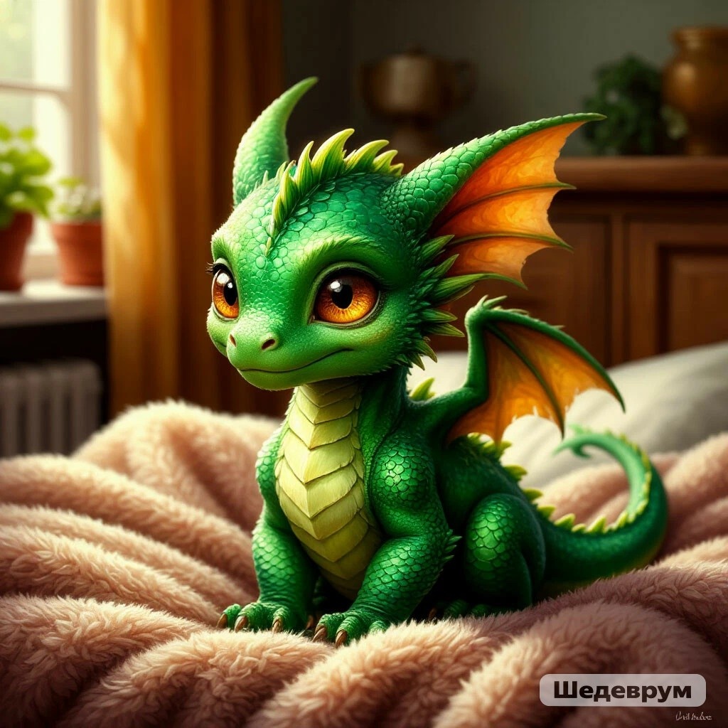Фонарик вдруг выхватил из темноты нечто невероятное. Никакой это был не котенок. В одной из коробок измученно попискивая, сидел маленький дракончик. Его чешуя мерцала зеленым светом, крохотные крылья были сложены вдоль тела, а глаза, большие и янтарные, смотрели на меня с мольбой. Не веря своим глазам, я замерла. Дракончик?