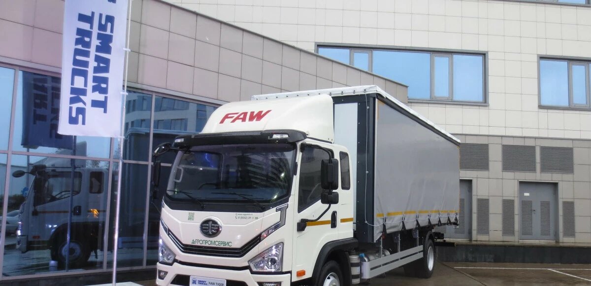 Компания «Смарт Тракс», официальный дилер «ФАВ-Восточная Европа» и дистрибьютор линейки FAW Tiger объявляет о старте продаж автомобилей FAW Tiger 6G. Михаил Ожерельев На старте продаж клиентам предложат автомобили полной массой 9 и 12 тонн. Девятитонная модель будет предлагаться в вариантах с колесной базой 3300, 3900, 4200 и 4700 мм. Шасси снаряженной массой 3390…3507 кг оснащается 3,8-литровым двигателем FAW DE Евро-5 мощностью 160 л.с. и крутящим моментом 500 Нм, который работает с 6-ступенчатой коробкой передач Wangliyang. Для привода вспомогательного оборудования предусмотрен отбор мощности от маховика. Подвеска спереди и сзади — рессорная, со стабилизаторами поперечной устойчивости. Тормоза — барабанные с пневматическим приводом. Современный внешний вид обеспечивает головная светотехника со светодиодными фарами и дневными ходовыми огнями, а V-образный фриз на капоте вызывает ассоциации с силой и грациозностью тигра. 12-тонная модель получила двигатель с настройками 180 л.с. и 650