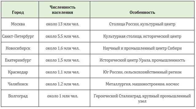 Краткая характеристика крупных городов России