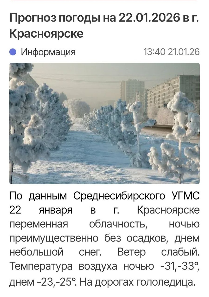 В Красноярске всё ещё морозно.