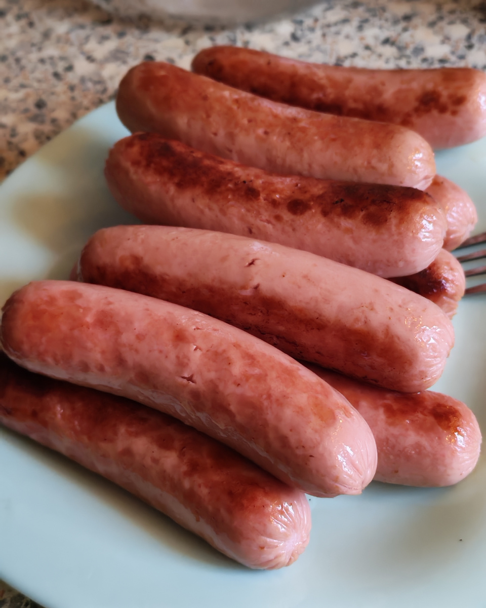 Утром в понедельник пожарила сосиски на сковороде. жареные сосиски детям стали нравиться больше. Варим их теперь редко.