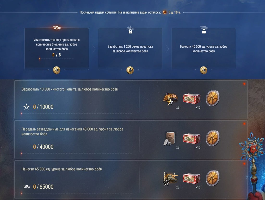 : • Еженедельные задачи Натиска; • Еженедельные Боевые задачи от «Деда Мороза».