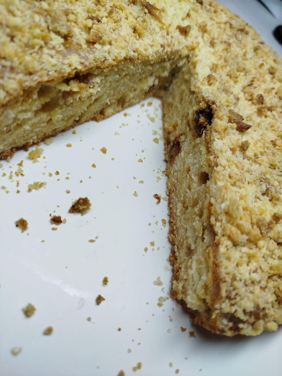 Столовая ложка муки с горкой+ столовая ложка сахара+ натереть на терке 30 гр сливочного масла . все перемешать до однородной крошечки. Этой крошкой присыпаем кекс сверху и ставим в духовку.