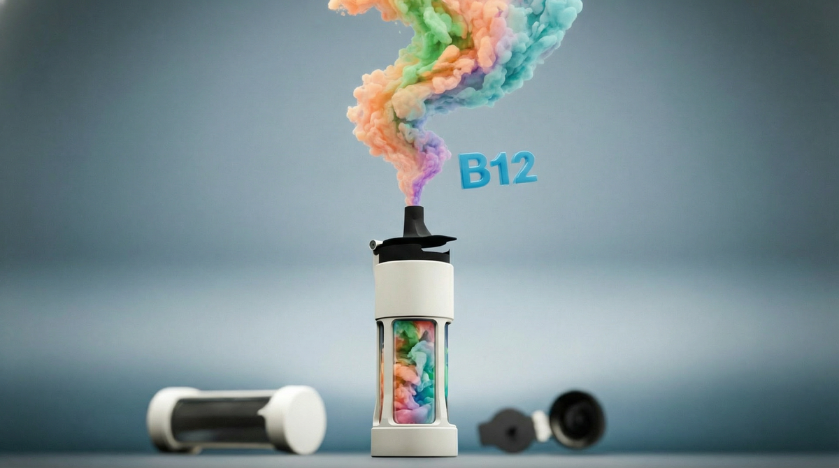 Отдельный сегмент — безникотиновые устройства, ориентированные либо на мягкий переход от курения, либо на wellness‑позиционирование. Компании вроде Melo Air, Nutri Air и HealthVape предлагают диффузоры, содержащие витамины, в том числе и B12, растительные экстракты и ароматизаторы, заявляя полное отсутствие никотина и табака и позиционируя продукт как не вызывающий зависимости и не содержащий токсинов.