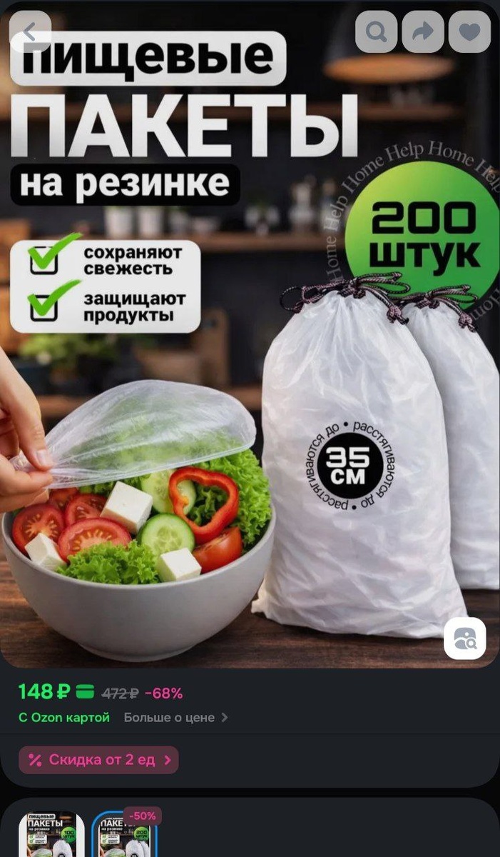 Пакеты для хранения продуктов, чехол для еды, крышка - шапочка, пакеты крышки на резинке, 35см, 200 шт за 148₽
