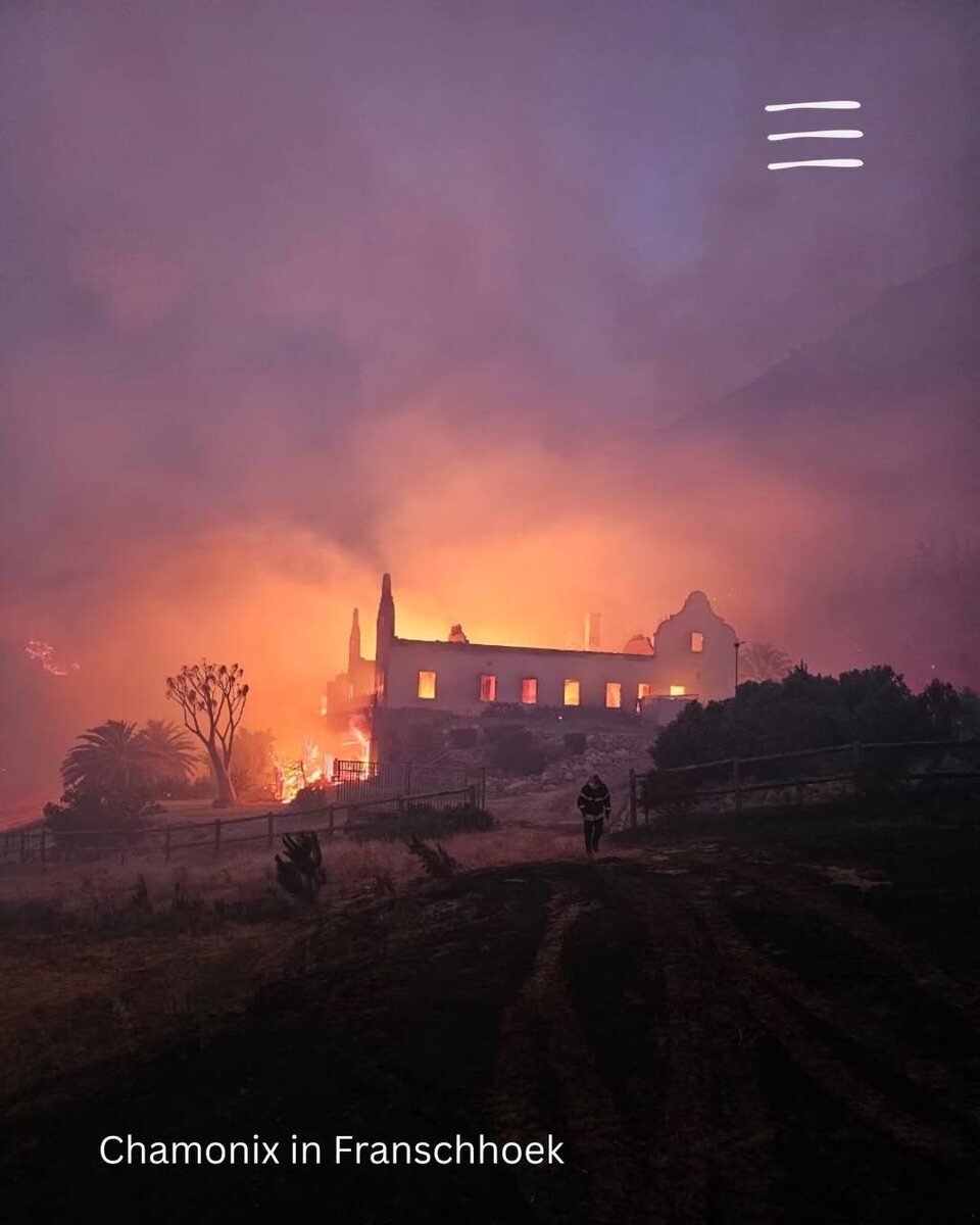 Дженсис Робинсон пишет о том, что с декабря в Западном Кейпе сгорело уже 100 тысяч гектаров (речь о землях, охваченных пожаром в целом - не о площади пострадавших виноградников). Пострадали такие винодельческие регионы как Stellenbosch, Paarl, Overberg, Walker Bay, Cape Agulhas и особенно Franschhoek. Месяцы летней засухи высушили растительность, а сильные ветра позволяют огню распространяться молниеносно. Правительство Западного Кейпа уже истратило весь свой бюджет, отведенный на тушение пожаров с воздуха, и запрашивает введение режима чрезвычайной ситуации. Пожары продолжаются до сих пор и ставят под угрозу сбор урожая этого года, который как раз сейчас начинается в ЮАР. Насколько виноделен повреждены, уничтожена часть виноградников… но урожай даже с тех виноградников, которые физически не пострадали, теперь под угрозой так называемого smoke taint: дефекта, при котором летучие соединения из дыма поглощаются ягодами и проявляются в вине неприятными ароматами дыма, пепла, жжёной ре