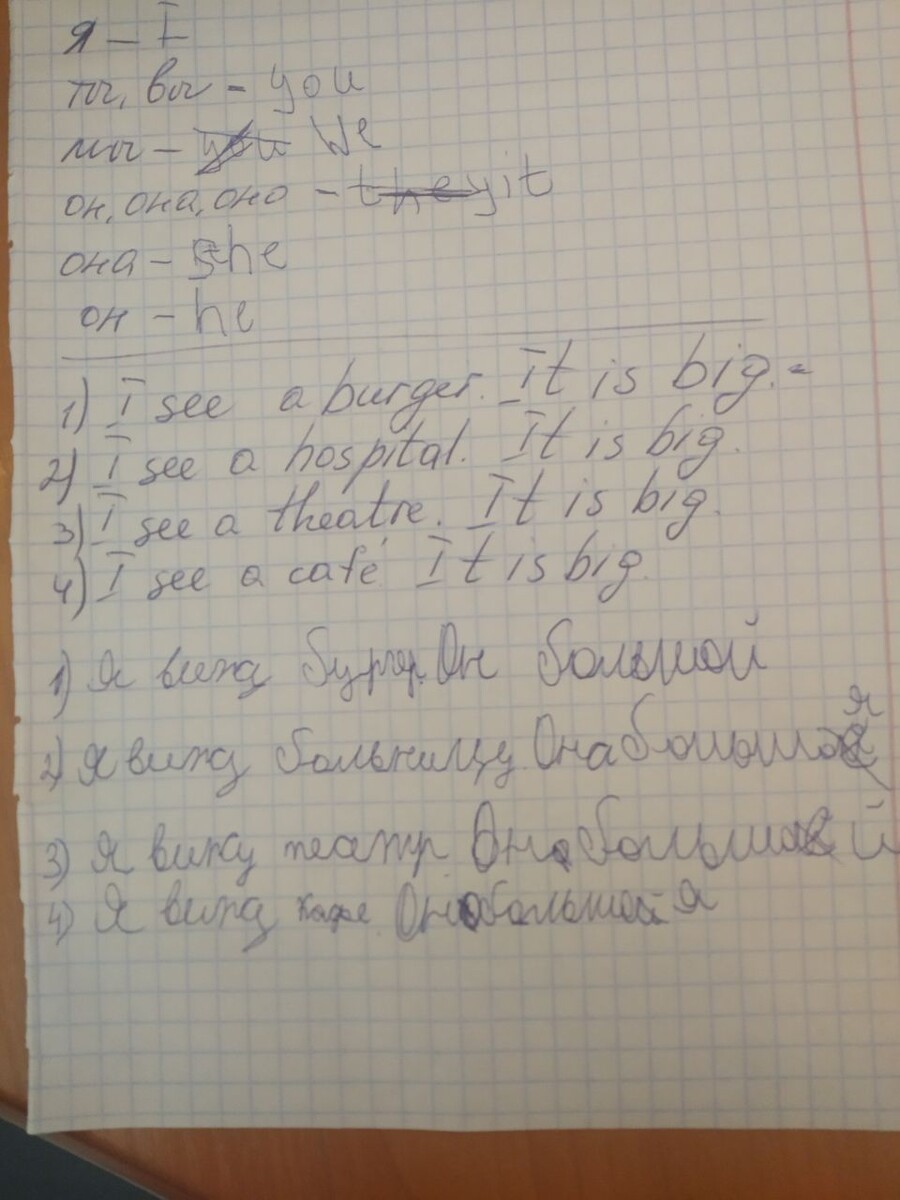 Что-то пока я терплю фиаско. Я вот о чем: Я всегда считала, что род слова определяется автоматически. Если бы... И я не умею этому учить Изначально правильный только бургер. Больница была «она большой». Театр – «оно большое». (Может, человек просто слова «театр» не знает? А его изучают в курсе английского.) Кафе изначально было «оно большой», после некоторых раздумий стало «он большая». Да гори оно все синим пламенем... (