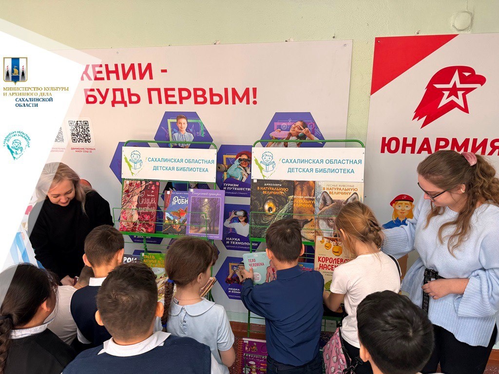 » 🏫 В январе у учеников младших классов СОШ №22 появилась возможность познакомиться с яркими и увлекательными книгами прямо на школьной перемене. Специалисты Сахалинской областной детской библиотеки дважды организовали для ребят выездные читальные залы «Литературная переменка». 📚 Во время большой перемены в холле школы была представлена выставка художественной и научно-познавательной литературы. Ребята охотно брали красочные издания, рассматривали и читали вслух друзьям понравившиеся отрывки. Благодаря такому формату работы у школьников появляется желание взять домой заинтересовавшую их книгу, они чаще записываются в библиотеку и становятся постоянными читателями.