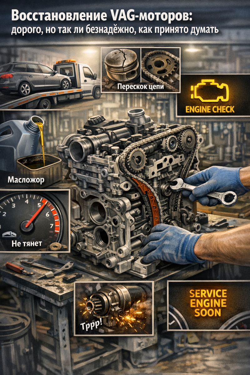 Про моторы VAG в последние годы говорят либо с иронией, либо с плохо скрываемой обидой. Для одних — это «немецкая инженерия», для других — хронический масложор, перескок цепи и эвакуатор как элемент штатной комплектации.