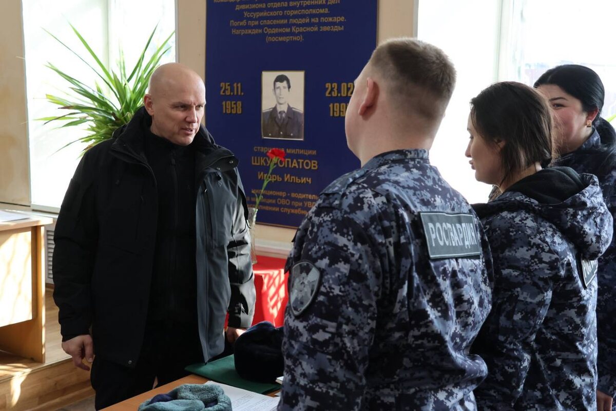 Генерал-лейтенант Александр Решетников проинспектировал подразделения регионального управления Росгвардии, выполняющие служебно-боевые задачи на территории Приморья. В ходе работы командующий округом посетил места дислокации Управления Росгвардии по Приморскому краю, ОМОН, СОБР и вневедомственной охраны. Командиры и начальники структурных подразделений доложили об итогах работы за прошлый год и текущем положении дел. Генерал-лейтенант Александр Решетников встретился и пообщался с личным составом, проходящим службу в краевом центре и других населенных пунктах региона. «Обращаю внимание каждого руководителя на заботу о подчиненных. Наши люди, выполняющие ответственные задачи здесь и в зоне СВО, должны быть уверены в завтрашнем дне. Не забывайте и о членах семей военнослужащих и сотрудников, которым также требуется наша с вами поддержка», - отметил командующий округом на совещании с управлением. Во время визита в ОМОН «Восход» г. Уссурийск состоялась церемония награждения отличившихся сот