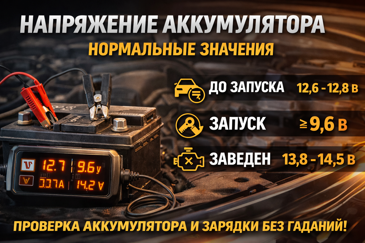 - 14.6–14.8 В — иногда встречается на холоде или в “умных” системах, но если постоянно — риск перезаряда (АКБ будет “выкипать” и стареть).
