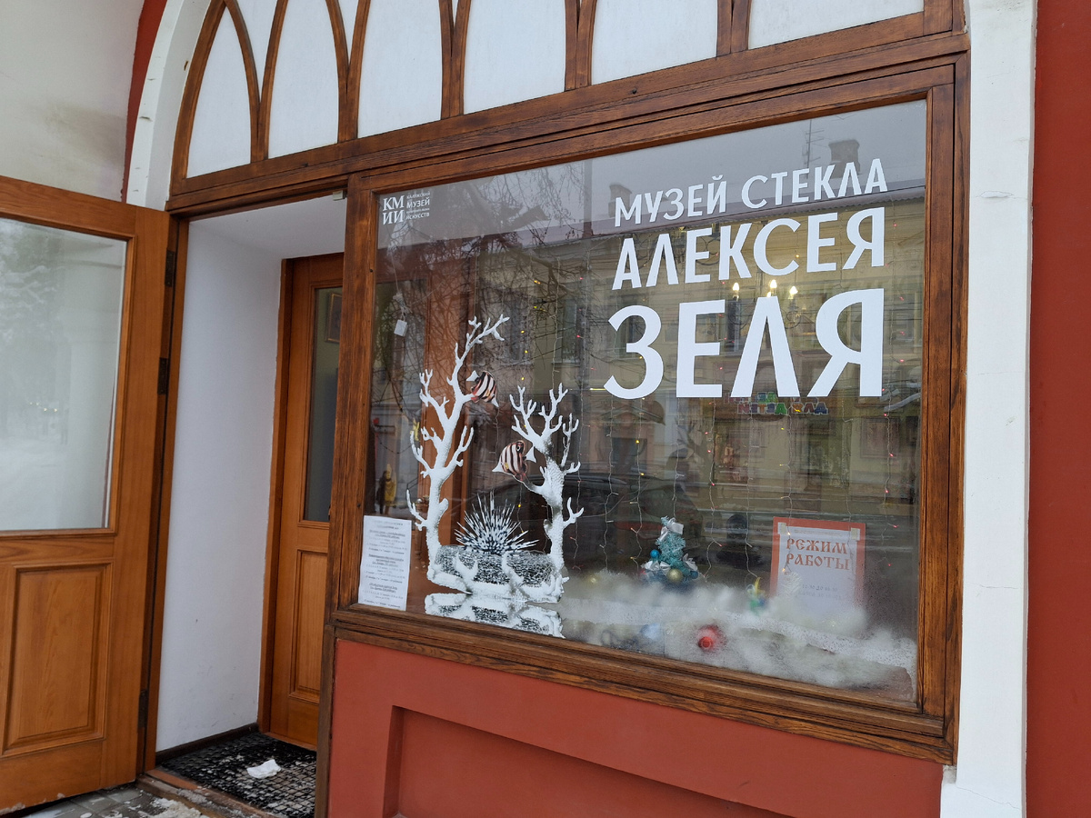 Музей стекла народного художника России Алексея Зеля находится в одном из корпусов Гостиного двора по адресу: улица Ленина, дом 116. Музей небольшой, всего две комнаты. Но очень хороший! Художник самостоятельно освоил профессию стеклодува и создал настоящее чудо! Внизу ежик. Вот он. Очень интересно рассматривать детали. В центре паучок. Вот он. И еще один паучок. Улиточка. Кораллы с рыбками. Лиса и виноград. Морской ежик внизу. Вот он. Кораблики. Ягодки. Идем дальше по музею.