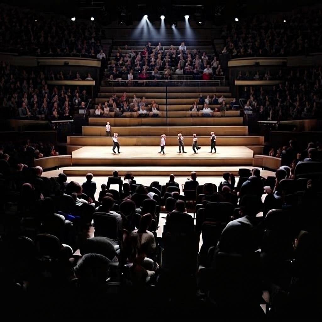 Но так как ряды стульев на сцене разместить так, чтобы видно было всем зрителям, весьма проблематично, то места были построены в виде своеобразной горки. Таким образом, что головы сидящих в нижнем ряду людей находились как раз на уровне колен зрителей, занимающих ряд выше. Мягко говоря, неудобно, но ради авангардного искусства можно и потерпеть - думала я.