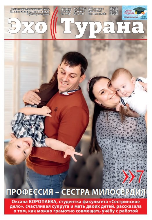 ! Уже завтра в продаже очередной номер газеты «Эхо Турана» Читайте в свежем выпуске: ШКОЛА КРАЕЛЮБИЯ: жителей Идринско-Краснотуранского округа приглашают стать авторами уникальной «Народной азбуки», которая станет живым свидетельством богатства истории и традиций нашей малой родины. ПРЕССА – ПРЯМАЯ СВЯЗЬ ВЛАСТИ С ЛЮДЬМИ: в День печати губернатор Михаил КОТЮКОВ провёл с руководителями городских и окружных редакций встречу, которая стала площадкой для оперативного решения множества важных проблем. ТАТЬЯНИН ДЕНЬ: Татьяна ВЛАСОВА, преподаватель Идринского филиала «Южного аграрного техникума», всегда мечтала учить детей. Уникальный репортаж Светланы РУДСКИХ. СЕСТРА МИЛОСЕРДИЯ ИЗ СТЭМИ: Оксана ВОРОПАЕВА, студентка факультета «Сестринское дело», счастливая супруга и мать двоих детей, рассказала о том, как можно грамотно совмещать учёбу с работой. ВНУТРЕННИЙ ОТКЛИК ДУШИ: история Гаянэ КРАСИКОВОЙ началась в солнечной Грузии, но судьба навсегда связала её с Сибирью. Откровенное интерв