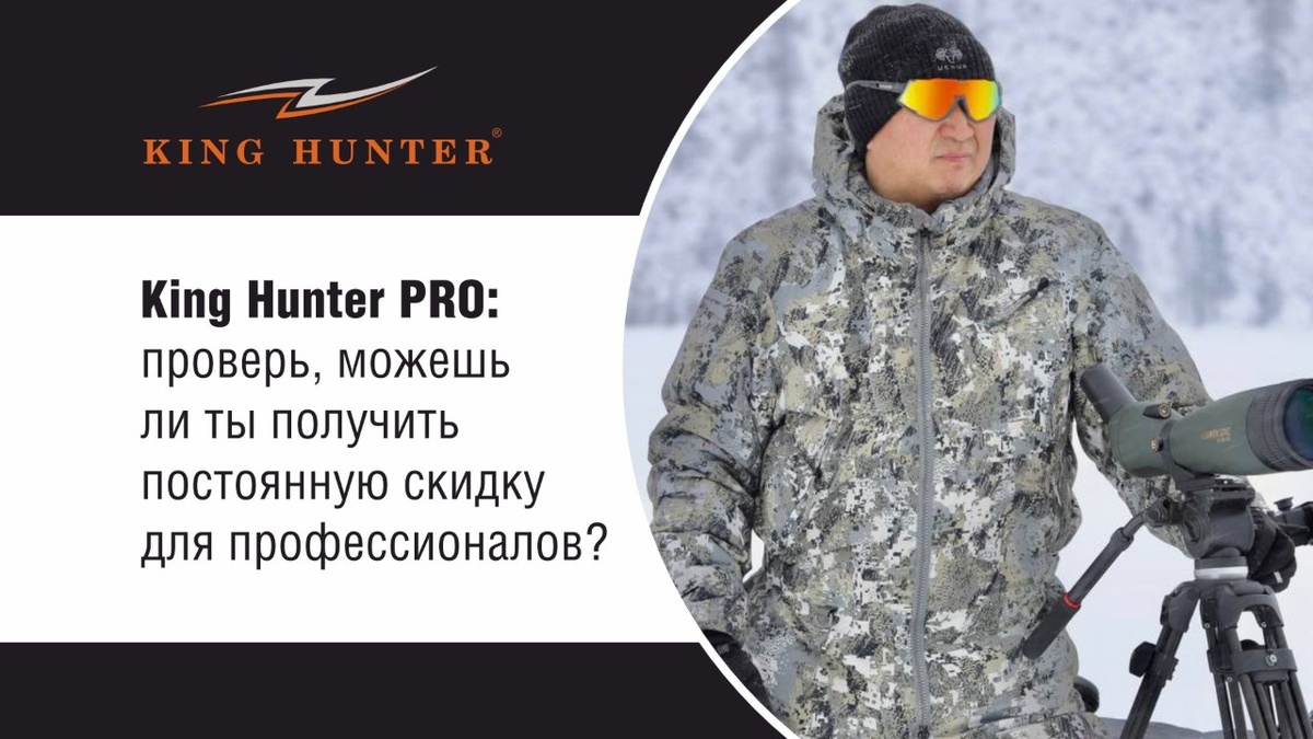 Мы глубоко ценим и уважаем труд тех, для кого тайга, горы и бескрайние просторы стали не просто работой, а вторым домом. Именно поэтому King Hunter предлагает профессионалам отрасли особые, эксклюзивные условия сотрудничества. Это не просто система лояльности, а полноценное партнерство с брендом, который досконально понимает ваши потребности и вызовы, с которыми вы сталкиваетесь каждый день.